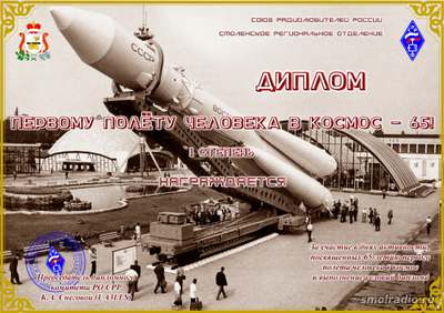 | В честь 65-летия первого полёта человека в космос учреждены и предложены к выполнению следующие дипломы: